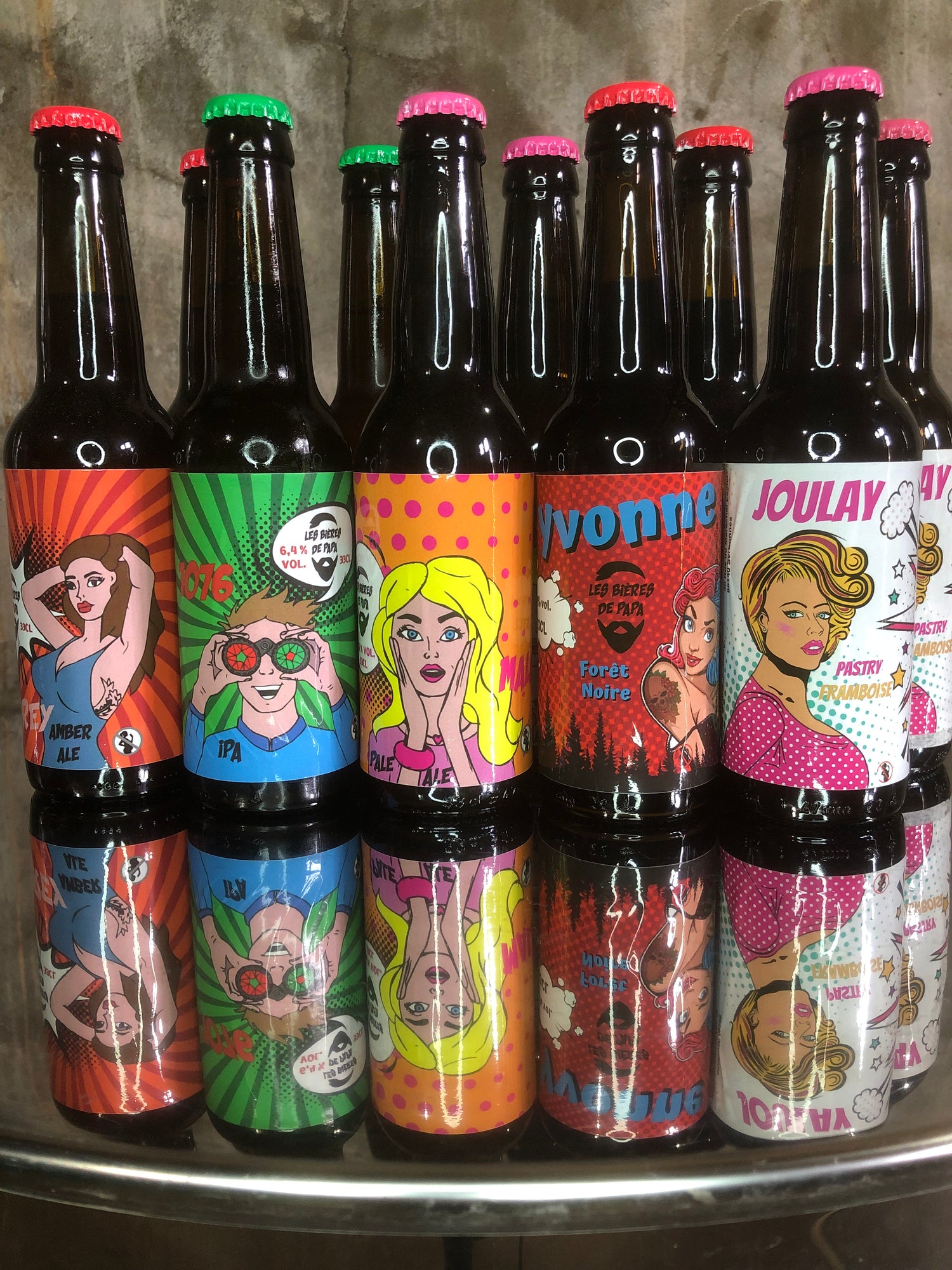 Disponibles en blonde, ambrée, IPA, framboises et autres styles en fonction de la saison et de l'humeur de papa! ;)