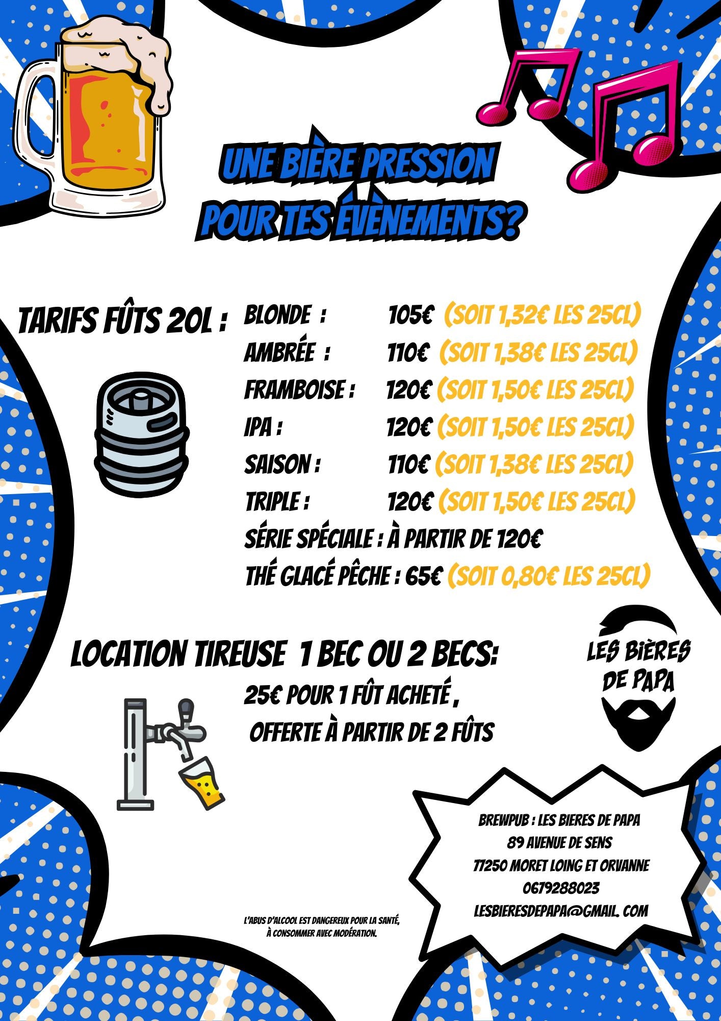 Pour tes évènements (anniversaire, mariage, baptême, repas de famille...), je te propose des fûts de 20L avec tireuse!